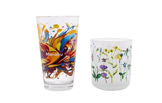 UV printing delivers vibrant, long-lasting designs on mugs, tumblers, and bottles made of glass, ceramic, or metal.